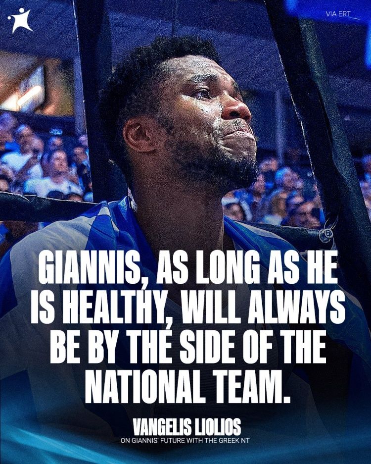 里奥利奥斯说:“我可以肯定地说,字母哥会继续。我要负责任地说,只要他健康,他就会一直在国家队身边。所谓‘一直’,就是永远。”