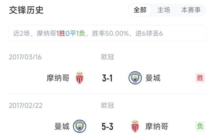 欧冠首轮比赛中,曼城主场2-0战胜意甲冠军那不勒斯,摩纳哥则是在客场1-4完败于比利时球队布鲁日。