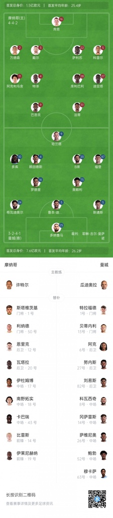 10月2日讯 北京时间凌晨3点,欧冠联赛阶段第2轮,曼城客场挑战法甲劲旅摩纳哥,赛前双方公布首发阵容。曼城方面,哈兰德、罗德里领衔首发,斯通斯、福登、赖因德斯等球员出战。
